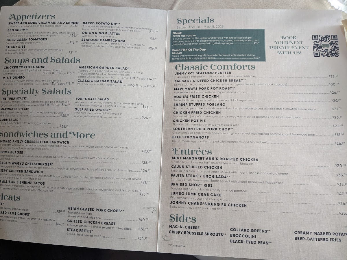 The overall tone of Grace’s menu reflects its approach to dining: straightforward, satisfying, and designed to make you feel right at home without any fuss or pretense.